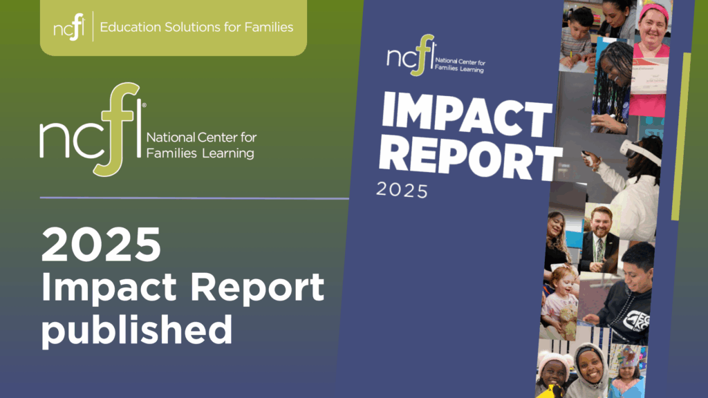 NCFL is proud to share our 2025 impact report, which highlights stories of positive change happening in the communities we serve. This year’s report blends data with family and community stories to show how our programs are transforming the lives of participating children and families. Readers will find early results from our Family Learning Communities™ along with highlights from partnerships that make our work possible. Most importantly, this report introduces readers to participating families who turned challenges into opportunities—like Brandy, who increased her job skills through family literacy and Sally, whose participation in an early literacy playgroup helped her strengthen connection with her young children through play.